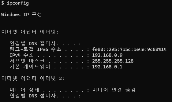 마지막으로 PC의 서브넷 마스크와 GW 주소가 제대로 변경되었는지 확인하자.