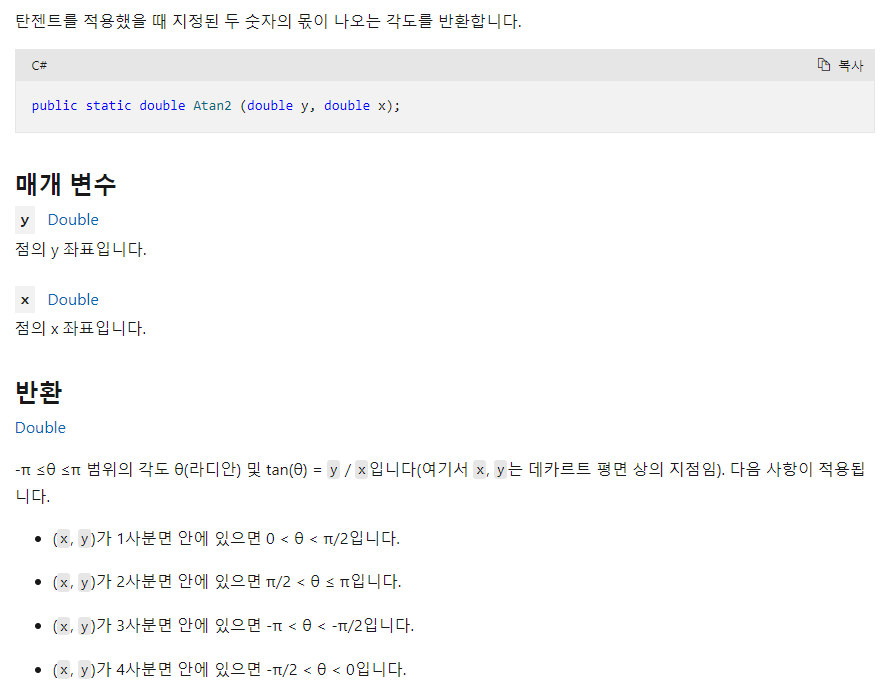 위는 Atan2 메소드에 대한 설명이다.