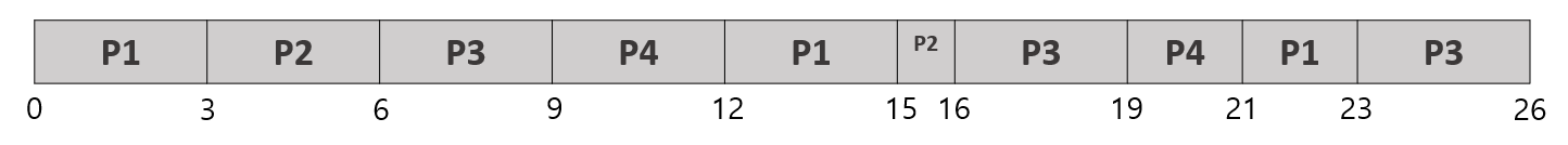 - Time quantum의 크기에 따라 결과가 달라질 수 있음