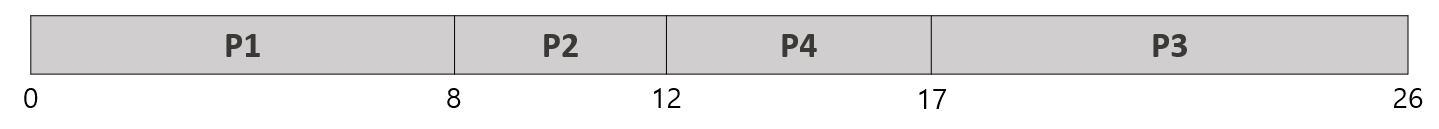 - 남은 Burst time이 가장 짧은 프로세스부터 실행