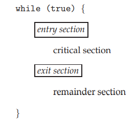 추후 살펴보겠지만 각 프로세스는 입장 영역에서 권한을 획득하고 퇴장 영역에서 권한을 반환하는 식으로 통제가 이루어진다.