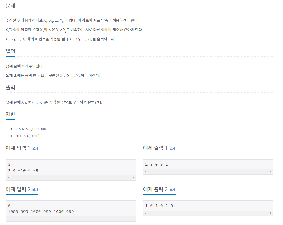 //압축된 좌표를 기존 위치에 출력하려면 기존 위치를 기억해야 하므로,