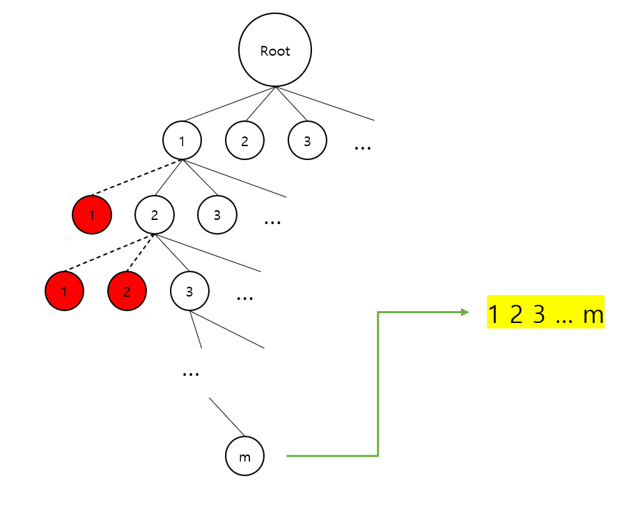 그리고 DFS에 조건 분기를 덧붙여서 필요없는 가지를 치는데, 이 문제에서는 중복되는 수가 나오는 가지를 쳐야 한다.